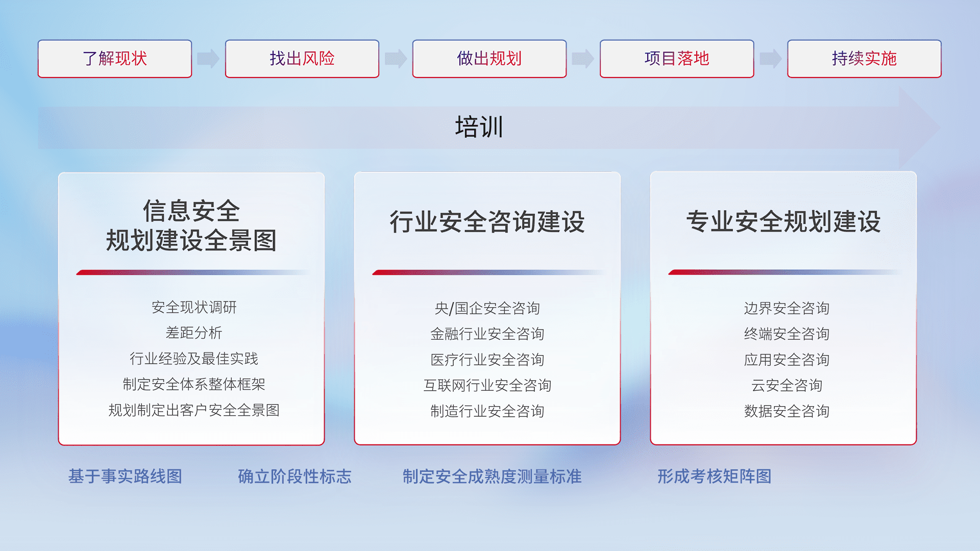 梳理客户信息安全现状调研、、、差距分析结果,,结合行业先进经验及最佳实践,,,制订客户的信息安全管控体系总结架构,,,最终形成一个完整的客户信息安全规划与建设的全景图。。。