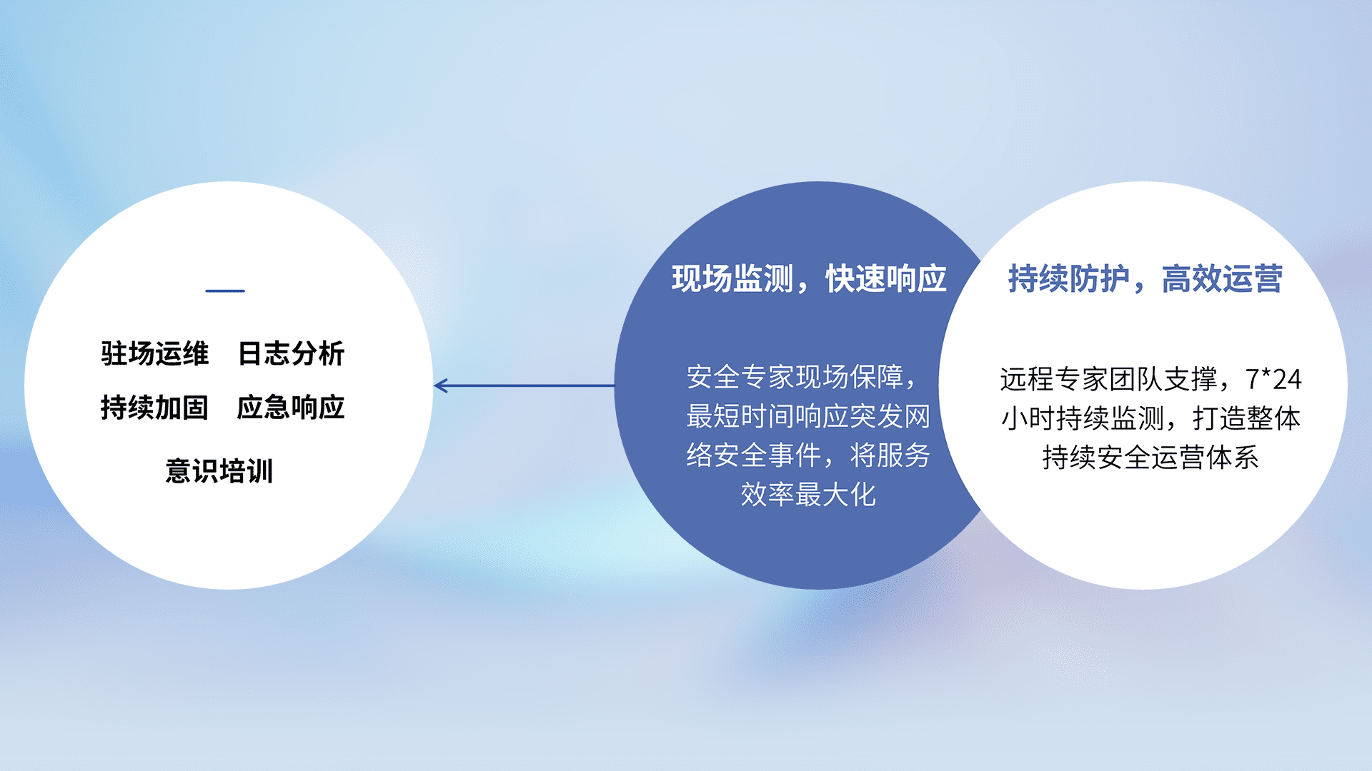 针对客户行业特性,,提供专属的一站式安全管理服务,,帮助客户全面感知网络空间威胁,,,通过安全专家的线上、、、线下防护支持,,,实现风险闭环,,将安全保障常态化,,,,为客户打造常态化安全运维运营服务。。。